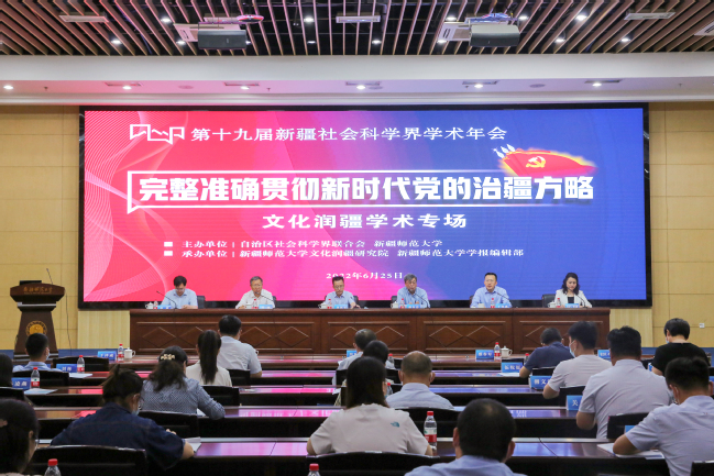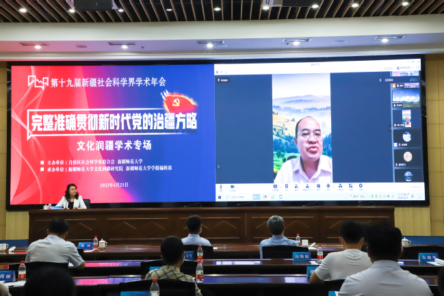 2022年6月25日,第十九届新疆社会科学界学术年会“文化润疆”学术专场暨新疆师范大学首届“文化润疆”高端论坛在新疆师范大学举行。中国社会科学院学部委员、中国边疆研究所所长、“新疆智库”办公室主任邢广程,中国社会科学院学部委员、国务院参事何星亮,新疆师范大学党委常委、副校长孙秀玲,北京大学学报常务副主编、中国高等文科学报研究会会长刘曙光,中央民族大学学报主编苏发祥,海南大学学报编辑部主任、文科学报主编刘家诚6位特邀专家进行主旨发言。