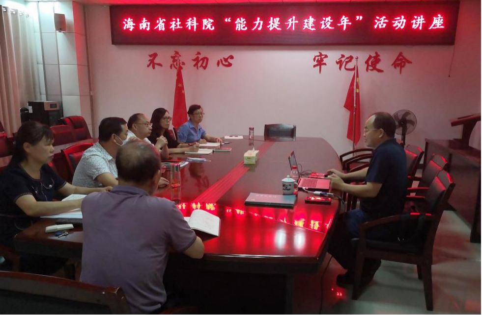 8月31日,为了落实省委常委、宣传部部长王斌关于“抓紧行动、推动《南海学刊》冲刺核心期刊”的指示精神,提升《南海学刊》办刊能力和办刊水平,提高办刊质量,海南省社科院举办“能力提升建设年”讲座,由《海南大学学报(人文社会科学版)》主编刘家诚主讲《海南大学办刊的若干新举措及其对〈南海学刊〉的启示》。海南省社科联党组书记、主席,社科院院长王惠平,省社科联专职副主席、省社科院副院长张君玉,省社科院副院长、省社科联副主席熊安静及社科院全体人员参加讲座。